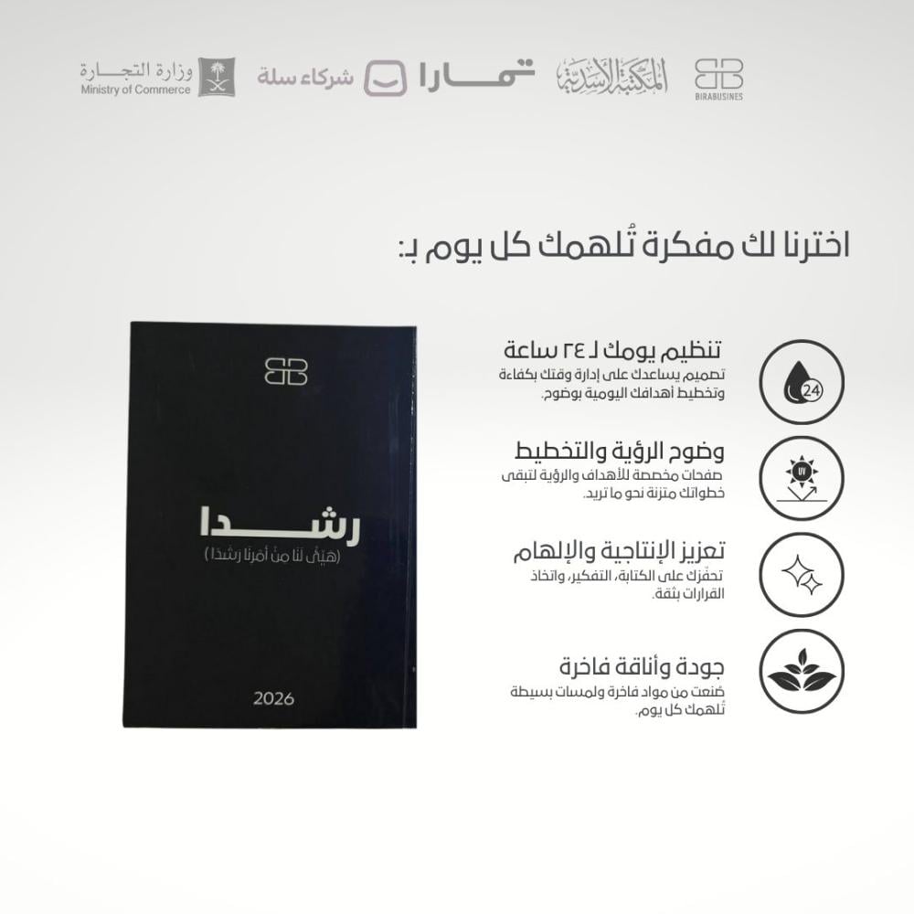 أجندة رَشدا 2026 مطبوعة | مفكّرة أعمال فاخرة للتجار ورواد الأعمال